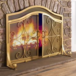 Plow & Hearth Small Cast Iron Scrollwork Fire Screen With Doors – Black Fireplace 680X03181