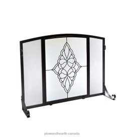 Plow & Hearth Small St. Charles Glass Medallion Flat Guard Fire Screen – Black Fireplace 680X03154