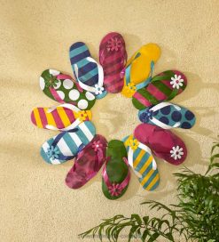 Plow & Hearth Boho Style Summer Flip-Flop Metal Wreath Houseware 680X01510