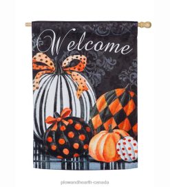 Plow & Hearth Elegant Plaid and Polka Dots Pumpkins Suede House Flag Houseware 680X01519
