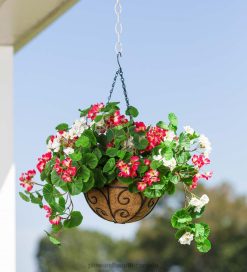 Plow & Hearth Everlasting Faux Red and White Geranium Hanging Basket Houseware 680X01571
