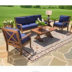 Plow & Hearth Indoor/Outdoor Chrysanthemum Polypropylene Throw Pillow – Blue Houseware 680X01243