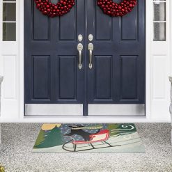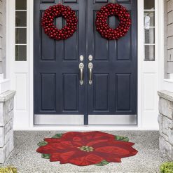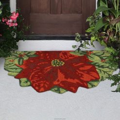 Plow & Hearth Indoor/Outdoor Hand-Hooked Poinsettia Reindeer Accent Rug Houseware 680X01330