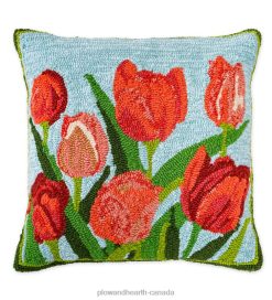Plow & Hearth Indoor/Outdoor Pink Tulips Hooked Polypropylene Throw Pillow Houseware 680X01254