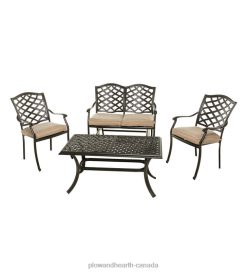 Plow & Hearth Park Grove Cast Aluminum Outdoor 4-Piece Seating Set with Cushions Houseware 680X03163
