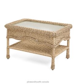 Plow & Hearth Prospect Hill Wicker End Table with Glass Tabletop – Driftwood Houseware 680X01155