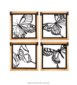 Plow & Hearth Wood Framed Metal Butterfly Wall Decor Set Houseware 680X02480