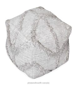 Plow & Hearth Zigzag Fringe Wool Pouf, 18sq. – Gray Houseware 680X02024