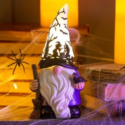 Plow & Hearth Halloween Gnome with Lighted Hat and Raven Houseware 680X02420