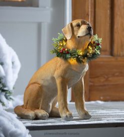 Plow & Hearth Yellow Labrador Statue with Removable Lighted Holiday Wreath Houseware 680X01693