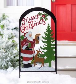 Plow & Hearth Colorful Painted Santa and Reindeer Metal Garden Trellis Stake Yard & Garden 680X0441