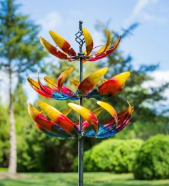 Plow & Hearth Multicolor Lily Flower Solar Lighted Metal Wind Spinner – Multi Yard & Garden 680X0345