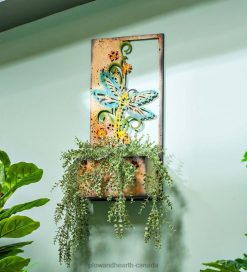 Plow & Hearth Painted Metal Dragonfly Plant Stand Yard & Garden 680X0965