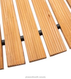 - Weather-resistant hardwood planks are joined with wire and rubber spacers