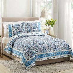 Seersucker resists wrinkling and is easy to take care of. Simply machine wash and dry, perfect for homes with pets or children. Set includes 1 quilt and 1 sham for twin size and 2 shams for full, queen and king sizes. Imported.