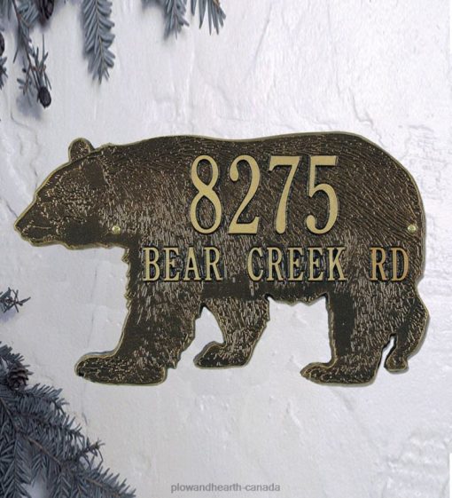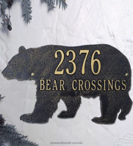 Plow & Hearth American-Made Bear Silhouette Address Plaque In Cast Aluminum – Black Yard & Garden 680X0707