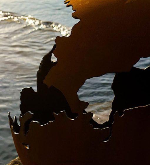 What a way to celebrate our planet – the cutouts in the sturdy, welded 1/4 -inch thick carbon steel construction of the Third Rock Globe Fire Pit depict the continents for a functional yard sculpture that’ s truly incomparable. Commissioned by the Olympic Committee in 2010 for the Whistler Athletes Village in the Winter Olympics, this handsome fire pit has been recognized internationally in print and viral media. With its weatherproof iron oxide patina, you can enjoy it all year long.This fire pit is as beautiful as it is functional for a piece of art you can use. Designed to enhance your evenings on the deck, in the backyard, or even on the beach, the inner bowl has a high temperature resistant coating and a 1-1/2 diameter rain drain. The outer iron oxide patina is maintenance-free so the fire pit can be left outside in all weather conditions. Patina matures and darkens with time and use. Interior features a hand-rolled coat of high temperature resistant black paint. Each unique fire pit is individually numbered by the artist on an attached brass plaque.