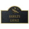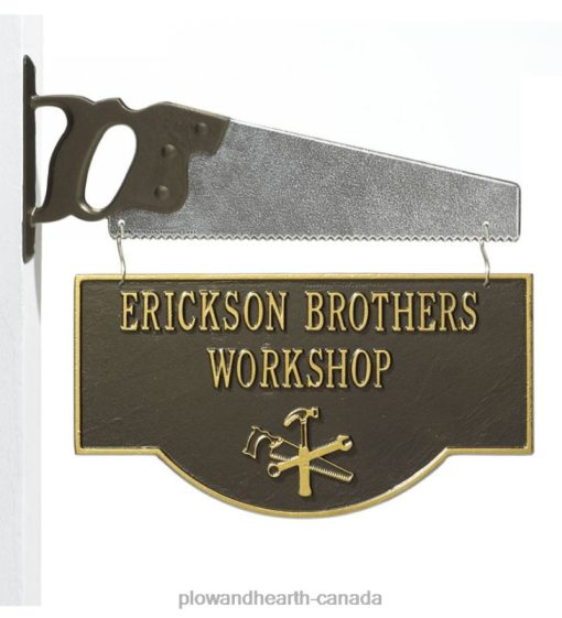 Custom-made in the USA from recycled cast aluminum, our personalized, 2-sided Workshop Sign makes a charming addition to any garage or workshop. Both the personalized plaque and the saw bracket from which it hangs are individually crafted, cast as one piece from durable, rust-free aluminum. Each sign features raised metallic-hued lettering. Saw bracket is bronze and silver; coordinating sign is bronze and gold. Powder-coat finish protects them from the elements.