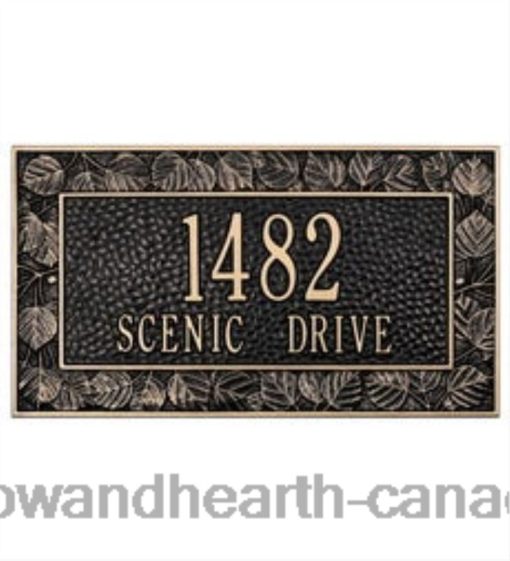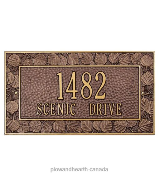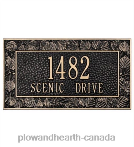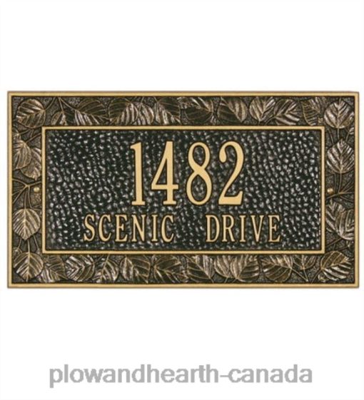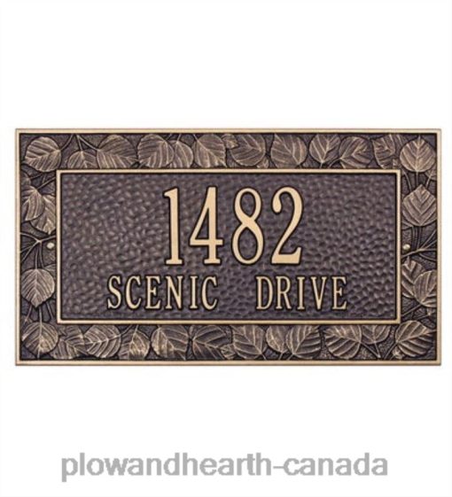 Created from a hand carving, a beautifully detailed aspen leaf design decorates this durable address plaque. Custom-made in the USA from recycled cast aluminum, our Aspen Leaf Address Plaque’s delicate border adds distinction to your address. Each sign features raised metallic-hued lettering on a background color of your choice. Powder-coat finish protects them from the elements.