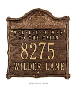 Custom-made in the USA from recycled cast aluminum, our charming Welcome to the Cabin Address Plaque suits any home. Each sign features raised metallic-hued lettering on a background color of your choice. Powder-coat finish protects them from the elements.