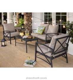 Plow & Hearth Arlington Cast Aluminum Outdoor Patio Seating with Cushions, 4-Piece Set Houseware 680X01140