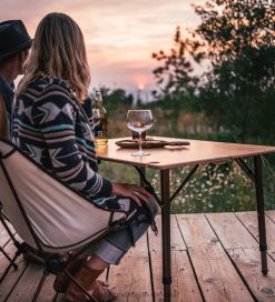 Crafted from strong, durable and lightweight bamboo, this travel table is stylish and convenient. Everything you love about retro-style with the benefits of modern construction, it features three adjustable heights, two built-in wine glass holders and an integrated bottle opener so you can feel at home wherever you set up camp.