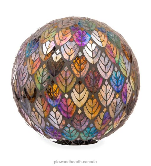 This Baroque Splendor Glass Mosaic Gazing Ball features a repeating leaf design in rich shades of purple, amber, teal and green.