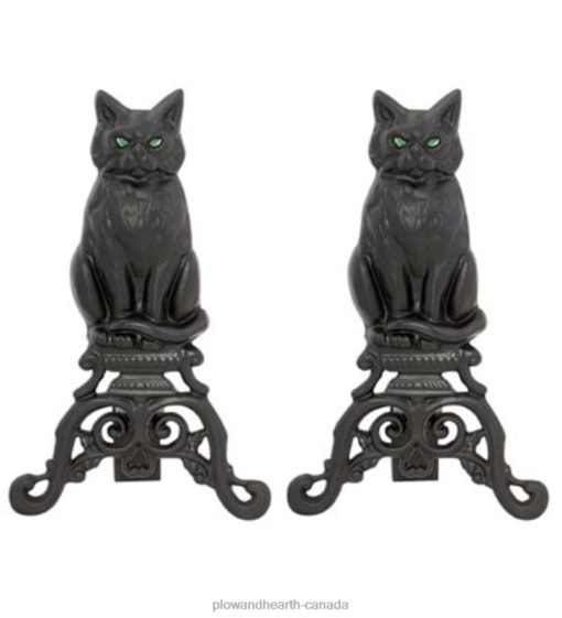 The grand black cats sitting atop graceful filigree will keep logs from rolling out of your fireplace. Black powder-coat finish ensures years of good looks. Solidly constructed of cast iron and solid steel with medium-length rear shanks. Sold in pairs.