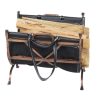 Our Black Wrought Iron Log Holder not only stores firewood conveniently and handsomely near your fireplace, it has a handsome leather sling with sturdy carry handles to make it easy to tote, too.