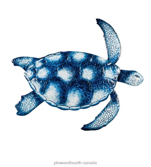 Crafted of metal with a hammered texture and painted details, this beautiful sea turtle will be an eye-catching statement wherever it is displayed. Deep blues create a wonderful contrast to the white, offering an ombre effect that adds to the coastal aesthetic. The dimensional finish gives this turtle an almost crackle-like feel, giving it the appearance of swimming underwater.