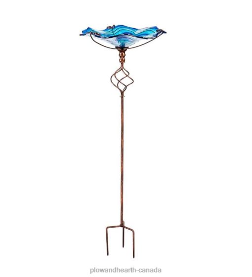 Crafted of durable glass with an elegant swirled blue design, this bird bath comes with a metal garden stake that offers a sturdy base for display. Birdbaths are also great for attracting other essential pollinators like honeybees and butterflies!