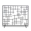 - Simple fireplace screen has clean lines and a nature-inspired aesthetic