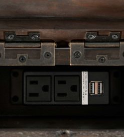 The Cape Charles Reclaimed Barnwood Power Station Desk combines vintage charm with modern technology in one versatile piece of furniture. The desk is expertly crafted of reclaimed pine in a rich dark brown finish.