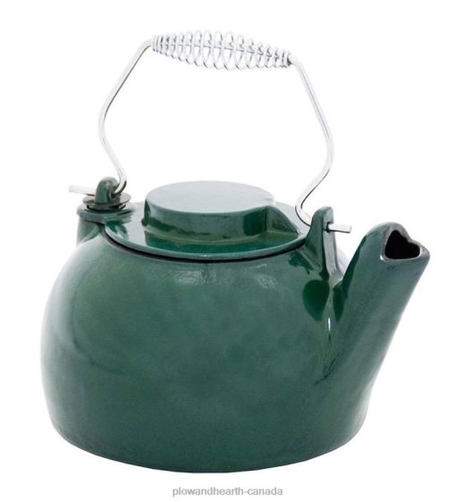 - Cast iron kettle with porcelain enamel finish and brass spiral handle