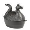 Put moisture back into the air during dry winter months with our Cast Iron Steamer Kettle with Porcelain Enamel Finish. A perfect accent for your woodstove or fireplace, the gorgeous enamel finish and cast iron construction make it attractive and sturdy.The classic kettle shape features a brass spiral handle to safely move the 2 1/2-quart container when it’s hot. Top secures to handle to prevent spills. Imported.