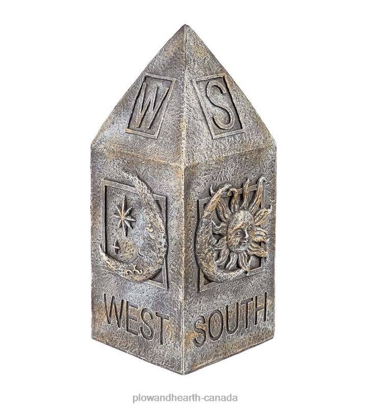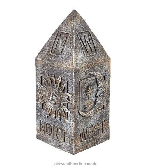A perfect addition to any garden, this garden totem is a unique way to showcase the cardinal directions. The embossed totem features celestial icons, including an intricately detailed sun and moon, on each panel with each direction.