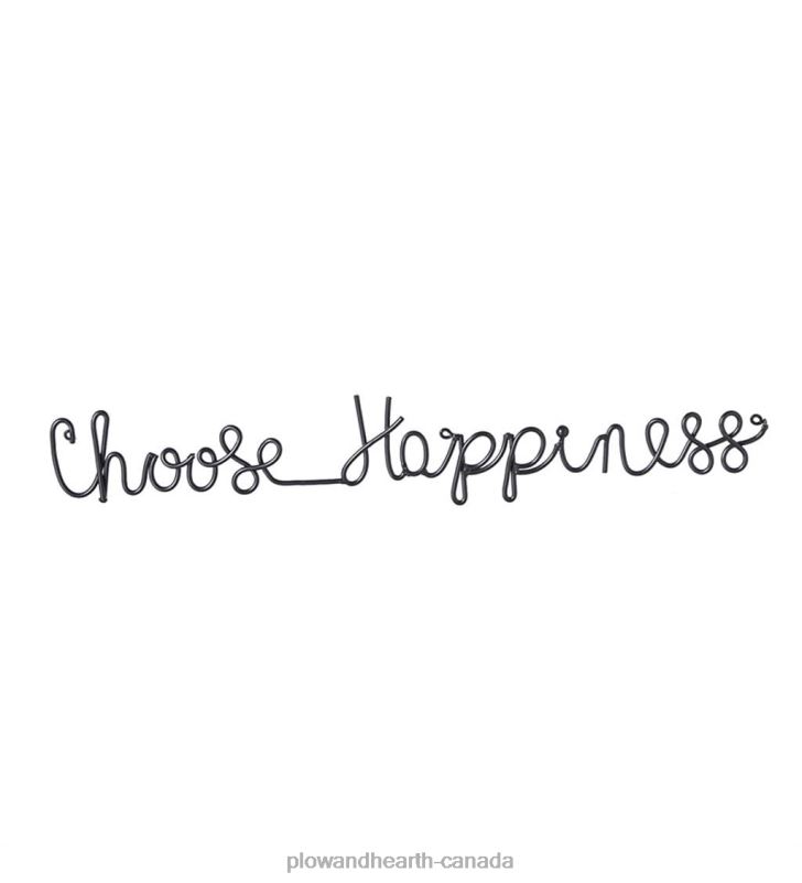 Made of black colored metal crafted into the words, Choose Happiness. The back of the piece has hooks made for easy hanging and it is safe for both indoor and outdoor use.
