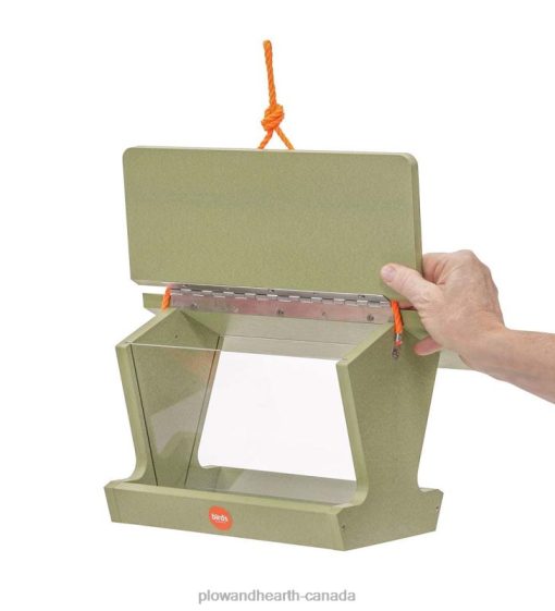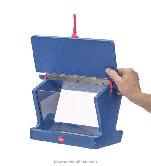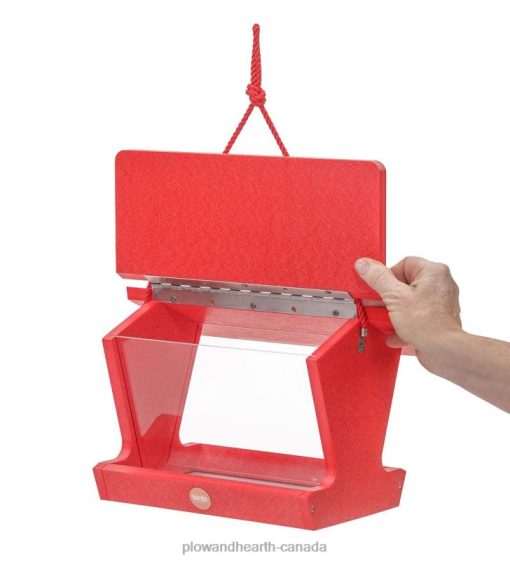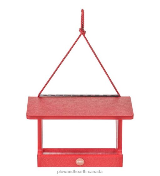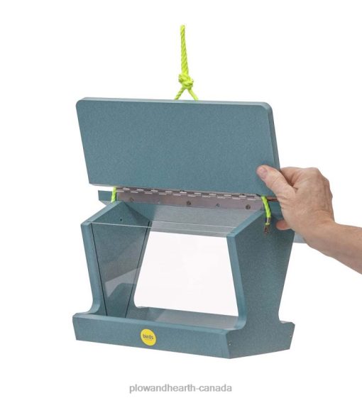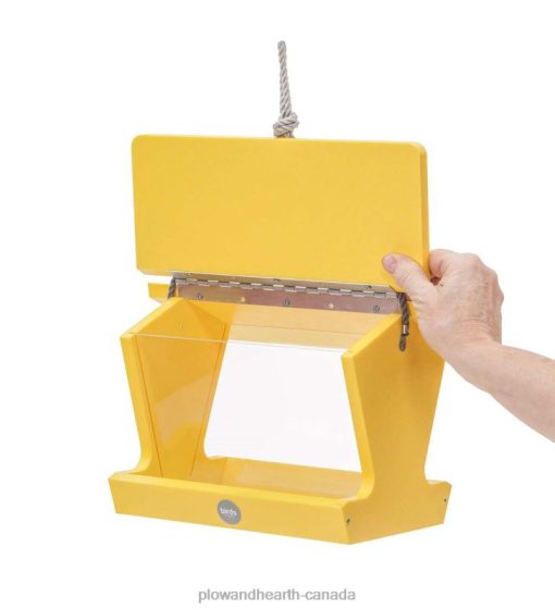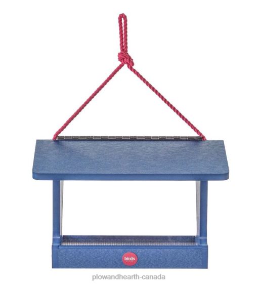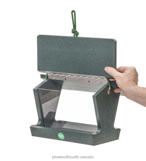 - Hopper-style bird feeder made of durable recycled plastic that won’t crack, split or fade