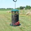 This eye-catching feeder comes with brass hardware, nylon hanging rope and powder-coated aluminum screen for excellent drainage to keep seed dry and fresh. Anodized aluminum hinged roof enables easy filling and cleaning; holds approx. 3 lbs. of seed, including corn products, millet, milo, shelled peanuts, tree nuts, mixed seed, safflower, sunflower and whole peanuts.