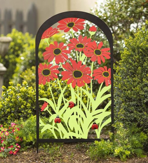 Our Metal Daisy Garden Trellis adds instant color and flair to your lawn and landscape. The bold, bright design shows gorgeous red daisies with greens that are sure to get noticed.