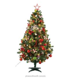 - 6’H Trees come with 150 warm white lights and 120 ornaments; 7 1/2’H Trees come with 250 warm white lights and 140 ornaments