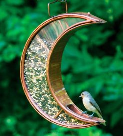 - Copper and plexiglass crescent moon-shaped bird feeder