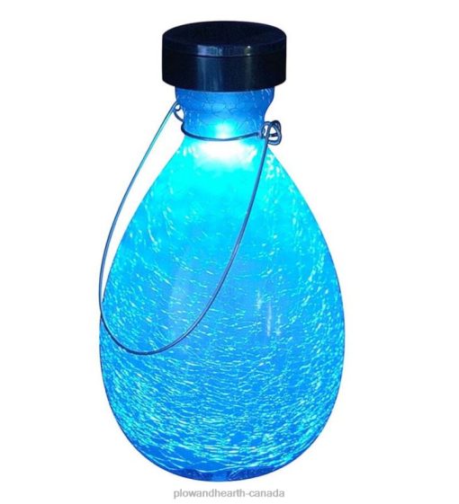 Add instant ambiance with our beautiful Crackle Glass Teardrop Solar Lantern. Easy to charge – the built-in solar panel soaks up the sun’s rays to keep it lit for up to eight hours after dark. Etched interior gives it a translucent, crackle effect with is enhanced by the jewel-like color. Attached aluminum handle makes it easy to carry or hang on your patio or deck.