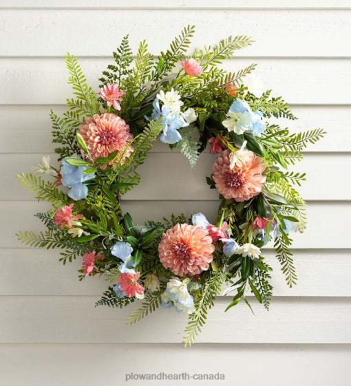 Plow & Hearth Dahlia and Fern Faux Floral Wreath Houseware 680X01656