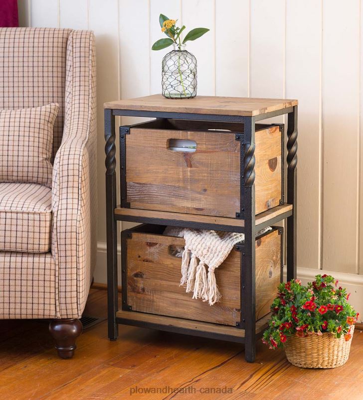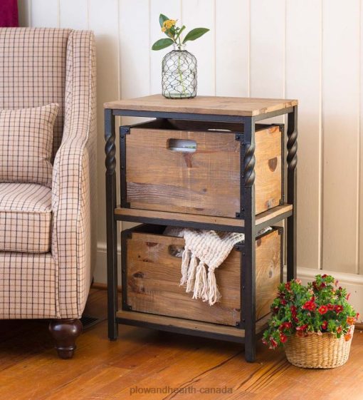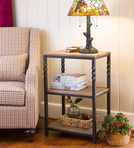 Part of our Deep Creek Collection, this versatile End Table has rustic, reclaimed pine shelves on a sturdy metal frame with twisted accents. Each piece has its own distressed finish, unique look and personality.