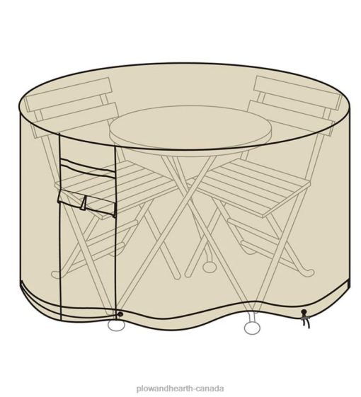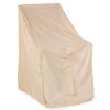 Our high quality Deluxe Deluxe Cafe Table and Chairs Cover withstands the sun, wind, rain and extreme temperatures. Two layers of tough polyester fabric protect your outdoor furniture investment against moisture damage – rain runs right off. Covered vents allow for air flow, helping to prevent mildew during storage. Sturdy handles make this bistro set cover easy to use, while elastic toggle ties keep it secure. The attractive sand color makes this outdoor furniture cover look great and resists fading. Fits over most cafe sets with small table and two chairs. Imported.