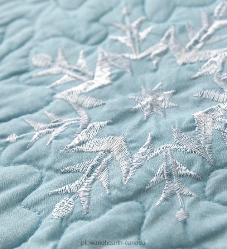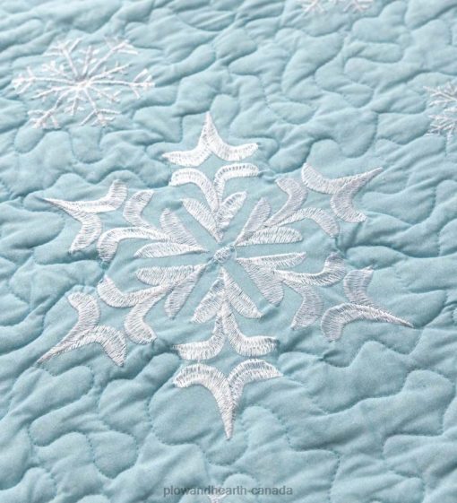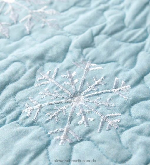 This festive quilted throw features an embroidered snowflake design and all-over vermicelli stitching for lots of texture and interest. White snowflakes fall beautifully against a powder blue background, making it perfect for the entire winter season from Christmas until spring.