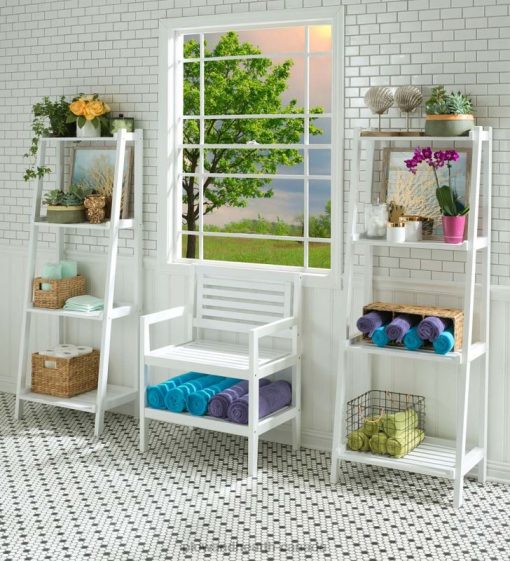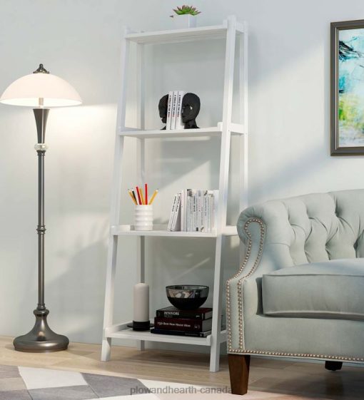 Plow & Hearth Farmhouse 4-Tier Wooden Leaning Ladder Shelf – White Furniture 680X02119