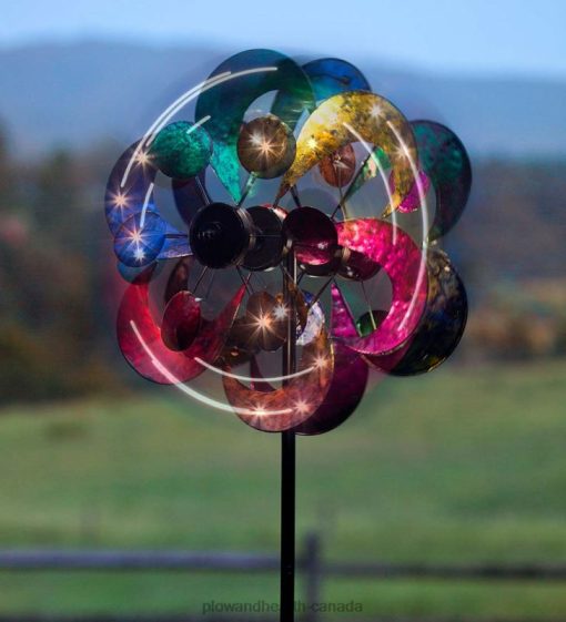 The stunning kinetic comes alive with each passing breeze, producing a mesmerizing visual show. Crafted from powder-coated metal, this wind spinner is durable and will hold up against the elements. Its embedded solar panel collects sunlight during the day to power the design throughout the night.