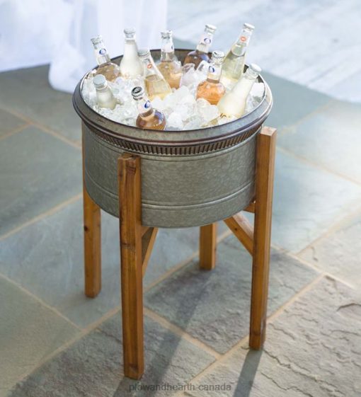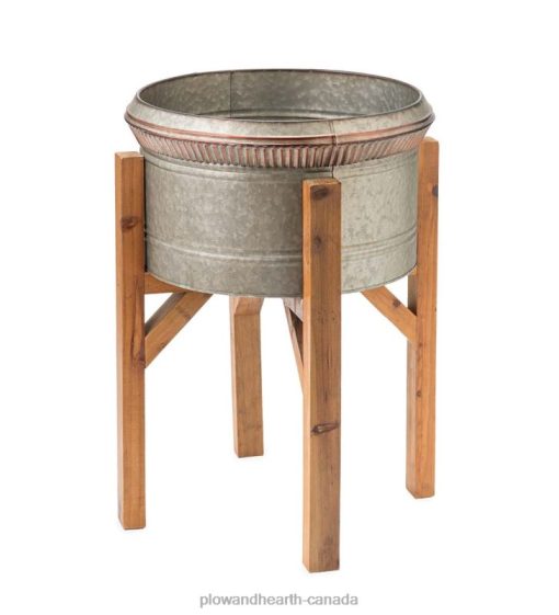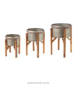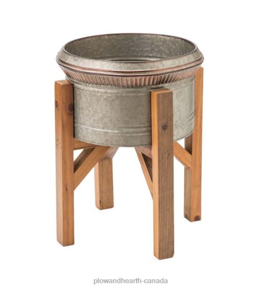Plow & Hearth Galvanized Planters with Wooden Stands, Set of 3 Yard & Garden 680X0923